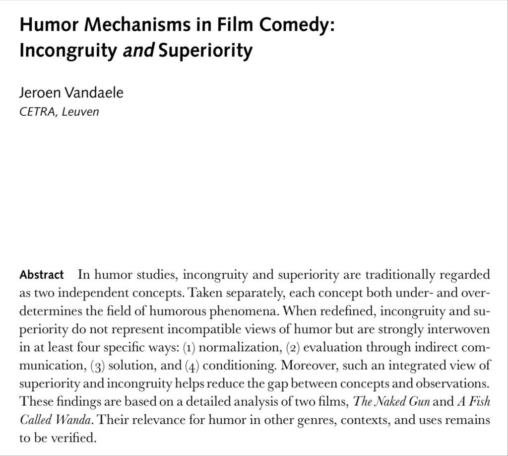 Summary of “Humor Mechanisms in Film Comedy: Incongruity and Superiority” by Jeroen Vandaele